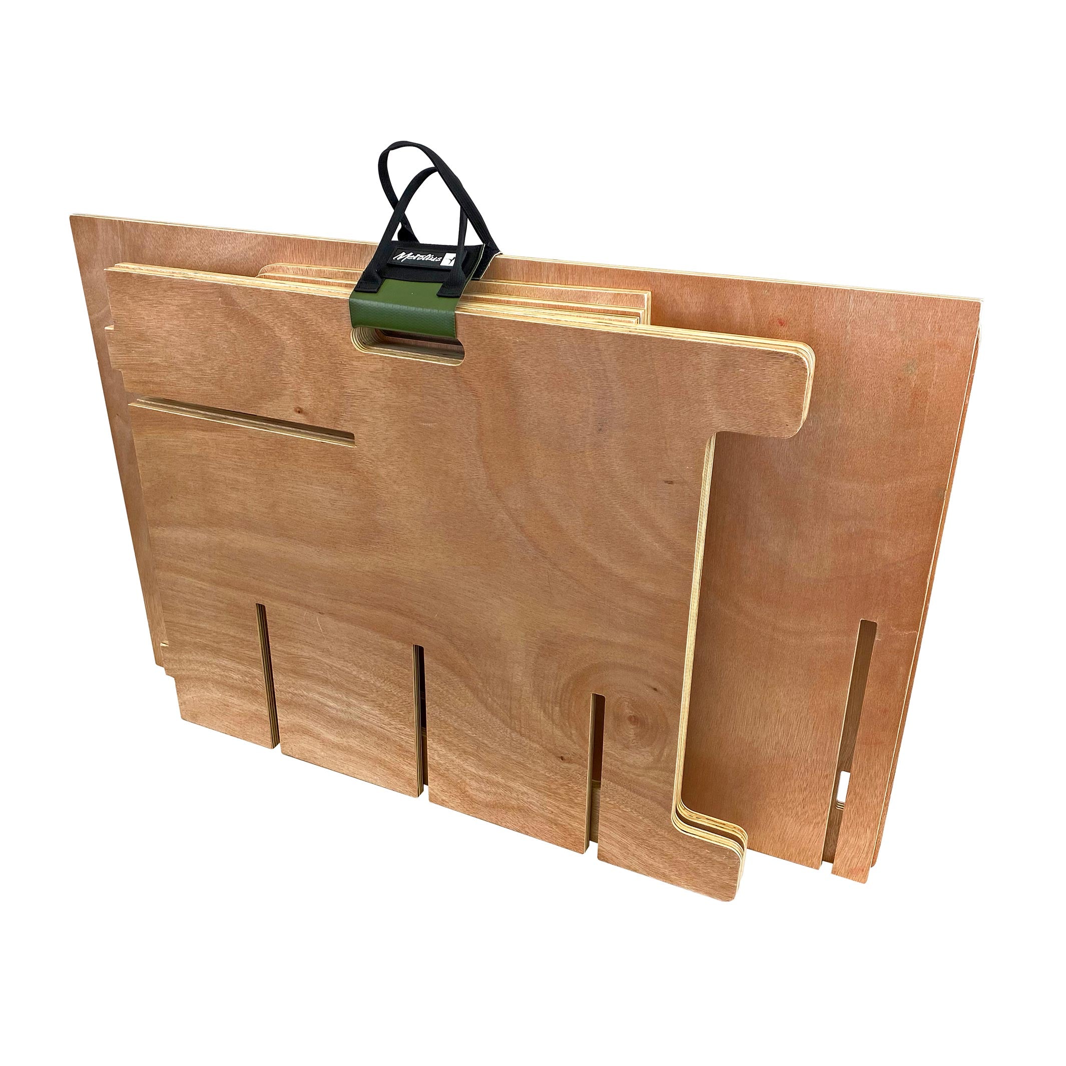 Camp Work Station is a remote work/cook station with quick set up and take down. Stores flat for easy transport, rugged plywood slot together construction.