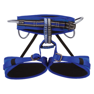 Our most comfortable free climbing harness, the Women's Deluxe has thicker foam and fleece lining, along with a design specifically for women. The wider waist belt gives increased support to the low back area. The Women's Deluxe Harness has four gear loops, a rear haul loop, and a reinforced tie-in point. It includes two belay loops to minimize clutter while setting up for rappels or multi-pitch belays. One simple, patented buckle adjusts the leg loop size and rise (distance between waist and leg loops) for a natural, comfortable fit.