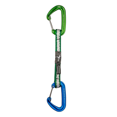 These lightweight quickdraws consist of two FS Mini II carabiners joined by a double-layered 14 mm Monster webbing providing excellent durability and grabability.